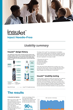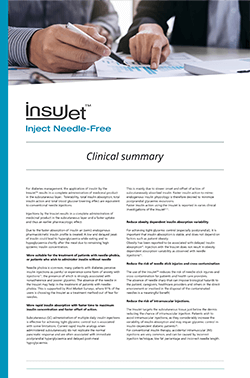 InsuJet's clinical trials, performed by a renowned Dutch academic hospital, were performed to com-pare the pharmacologic profile of administration of insulin aspart by jet injection to that by conventional insulin pen.