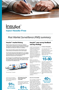 Information on the InsuJet market history, InsuJet user survey feedback and key findings, and InsuJet PMS follow-up.