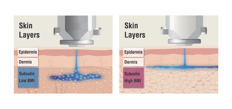 Or better, one InsuJet is suitable for any size, gender, or age of subject. InsuJet may especially benefit people with a higher Body Mass Index (BMI).